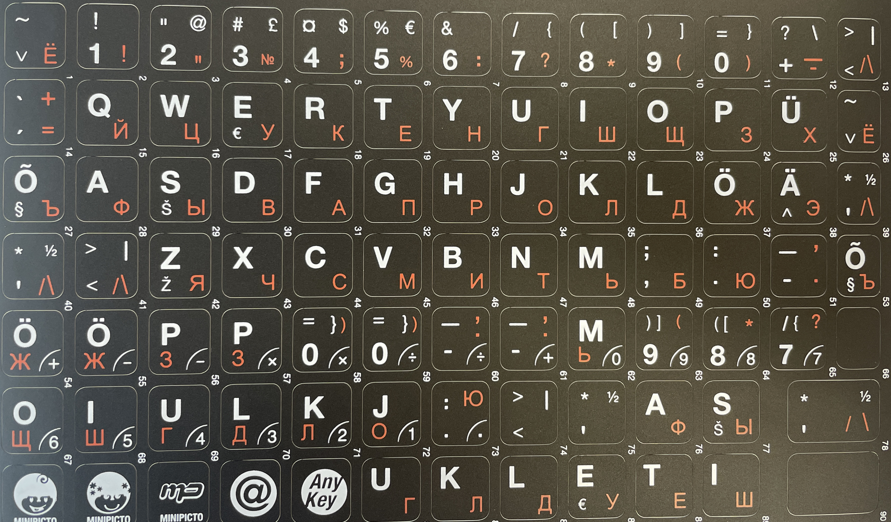 Esileht » E-pood » Lisatarvikud » Klaviatuurikleebised EST-RUS, taust must tähed valge/punane Klaviatuurikleebised EST-RUS, taust must tähed valge/punaneTootekood: KK2/EST-RUS-P9,00 € Tähestik: EST/RUS Sümboli värv: Valge/roheline Tausta värv: Must Pind: Matt 4 olemas Arvutiteeninduses Klaviatuurikleebised EST-RUS, taust must tähed valge/punane kogus - + Lisa korvi Seotud tooted Klaviatuurikleebised Vene, taust läbipaistev tähed must 9,00 € Lisa korvi DVD+R TDK 4,7GB 1-8x 1,00 € Lisa korvi Laadija 5V/2A/10W USB valge 10,00 € Loe edasi USB-jagaja Logilink 4 port sinine 12,00 € Lisa korvi